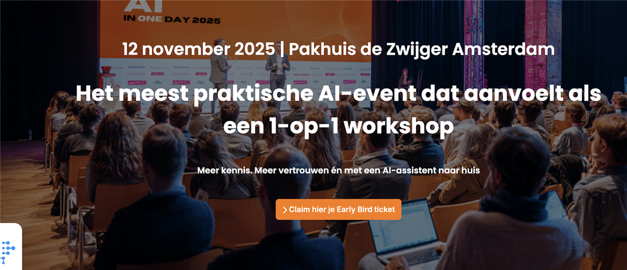Geen tech-jargon of ingewikkelde code, maar begrijpelijke uitleg, hands-on opdrachten en praktische tools waar je morgen al mee verder kunt. Inclusief AI literacy certificaat, lunch, netwerkmomenten én verrassingssprekers.